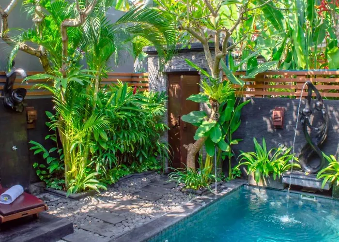 Die 1-Zimmer- Swaran 1 Bedroom Private Pool Villa Seminyak liegt im Stadtteil Sunset Road, etwa 5 Minuten zu Fuß vom Buddha To Buddha Bali entfernt, und beeindruckt mit einem Blick auf den Pool. Die Villa in Seminyak bietet Gästen WLAN und einen privaten Parkplatz und ist in ca. 2 km Entfernung vom Krisna Oleh - Oleh Bali Sunset Road.